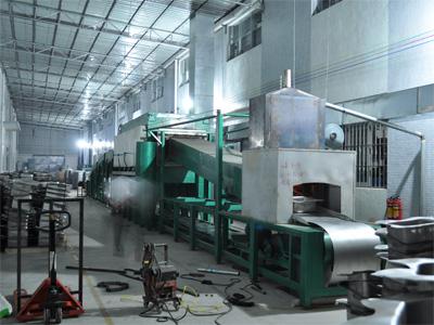 台车式退火炉通常用于生产高质量的家电板和汽车板,一般包括以下炉段:喷气预热段(JPF ) ,辐射管加热段(RTF )、均热段(SF )、缓冷段}scs)、快冷段(Rcs}、出口段(ES)等。最新的台车式退火炉采用废气三级余热回收(第一级余热回收用于预热助燃空气,第二级余热回收 用于预热..